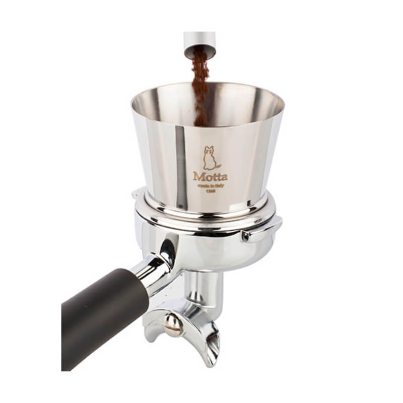 Ανοξείδωτο χωνί κλείστρου για τη συλλογή της δόσης του καφέ από τον μύλο χωρίς απώλειες.