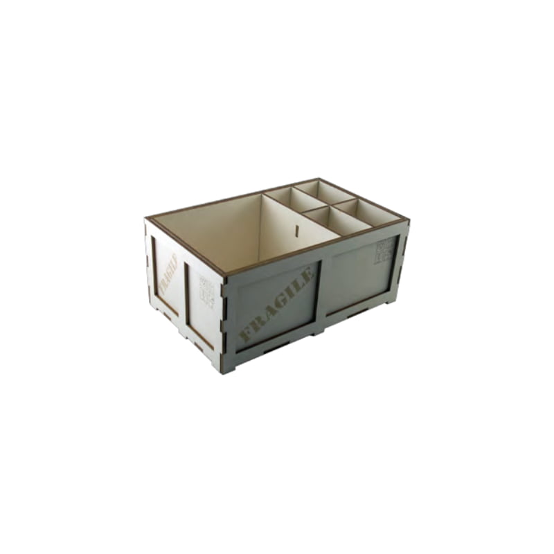 Bar organizer μινιατούρα κιβώτιο με ένδειξη fragile από ξύλο οξιάς.