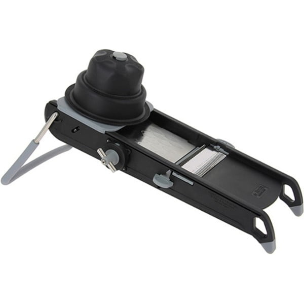 Μαντολίνο «Swing», μαύρο, πλήρες (πιεστής, δοχείο, η νέα οριζόντια διπλή micro-serrated οδοντωτή λάμα και μία julliene 4 & 10 mm) με σύστημα μετρήματος πάχους