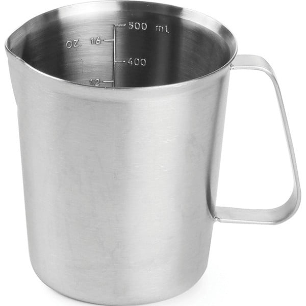 Κανάτα μέτρησης 0,5 L, inox. Διαθέτει ειδική σχεδίαση που εξασφαλίζει ακρίβεια στις δοσολογίες. Κατάλληλη για επαγγελματική χρήση.